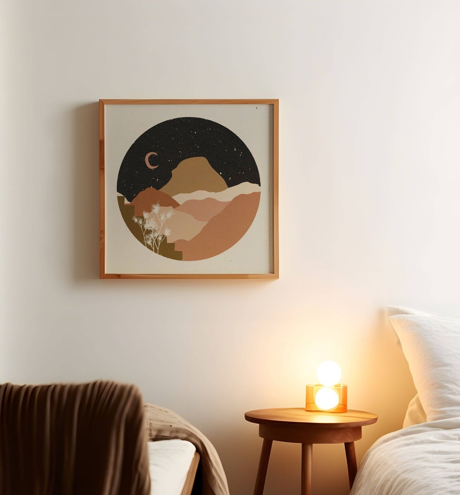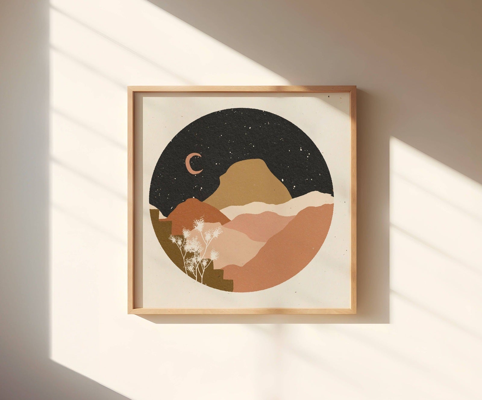 "Desert Flower at Night II" Print Printed on 100% Recycled Cardstock, Off-White Matte Speckled (natural flecks) Frame not included. Prints are individually packaged with a thick card stock backer board and sealed cellophane sleeve. Designed and printed in Kansas City, MO by Jess Macy of colorbloKC (@colorblokc).