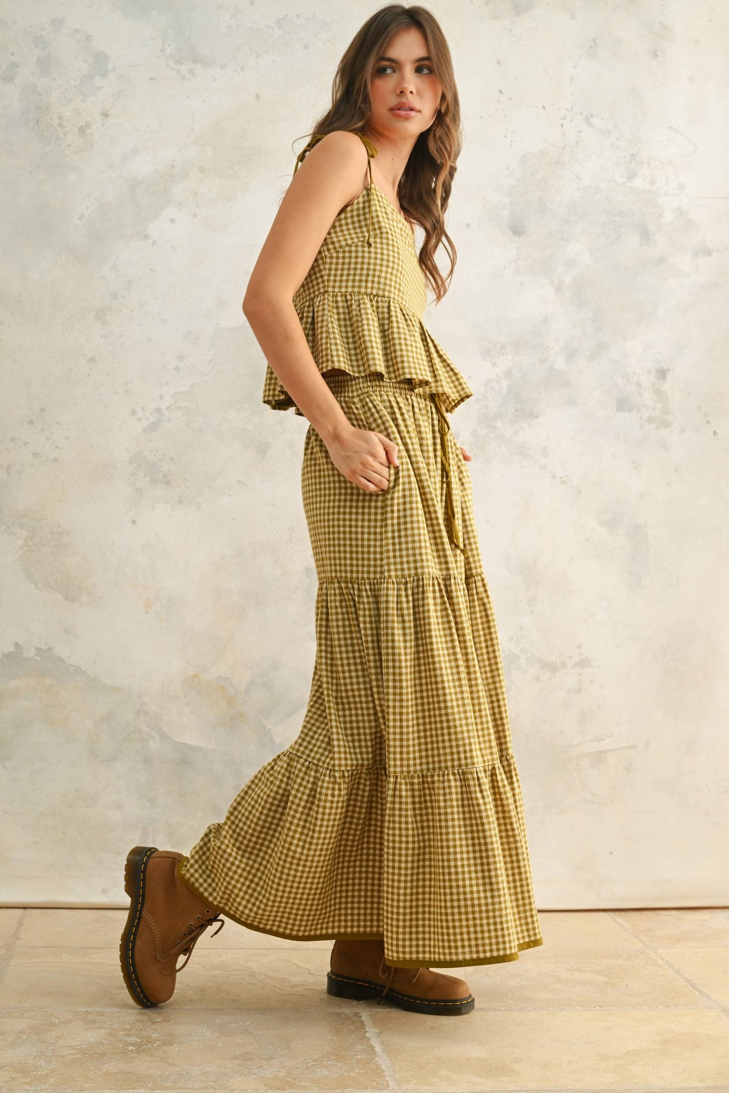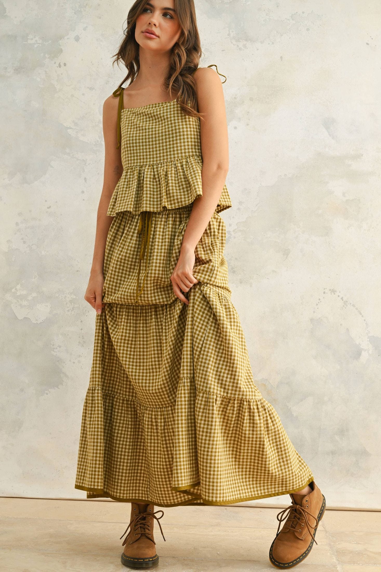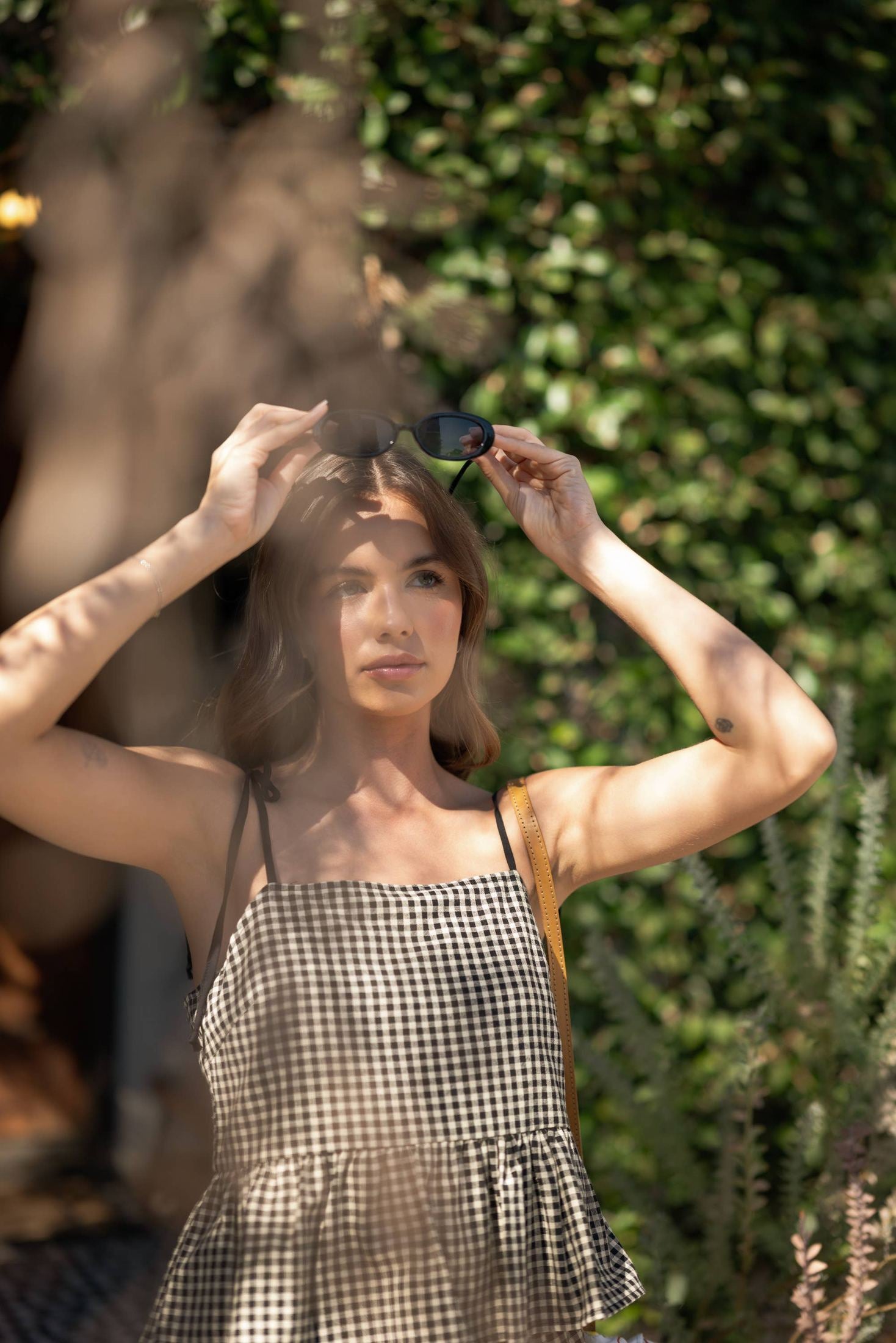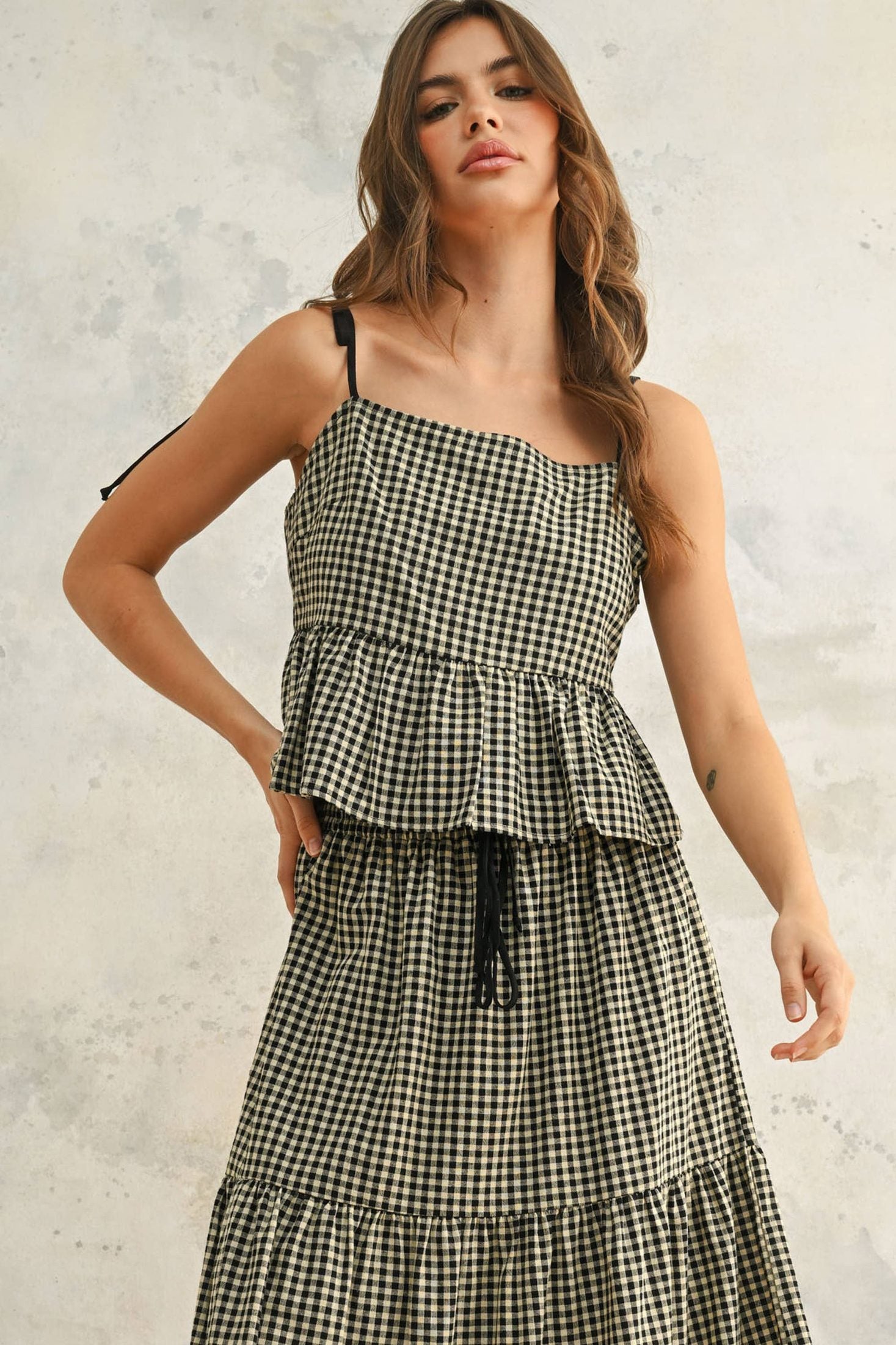 This top is perfect for warm weather and giving off some major spring vibes. Plus, it's Easter-ready! The gingham pattern adds a playful touch to any outfit, and the fit is just right. Model is wearing size S, with measurements of 33(Bust) - 24(Waist) - 34(Hips) and a height of 5' 7 1/2" / 175.3CM.