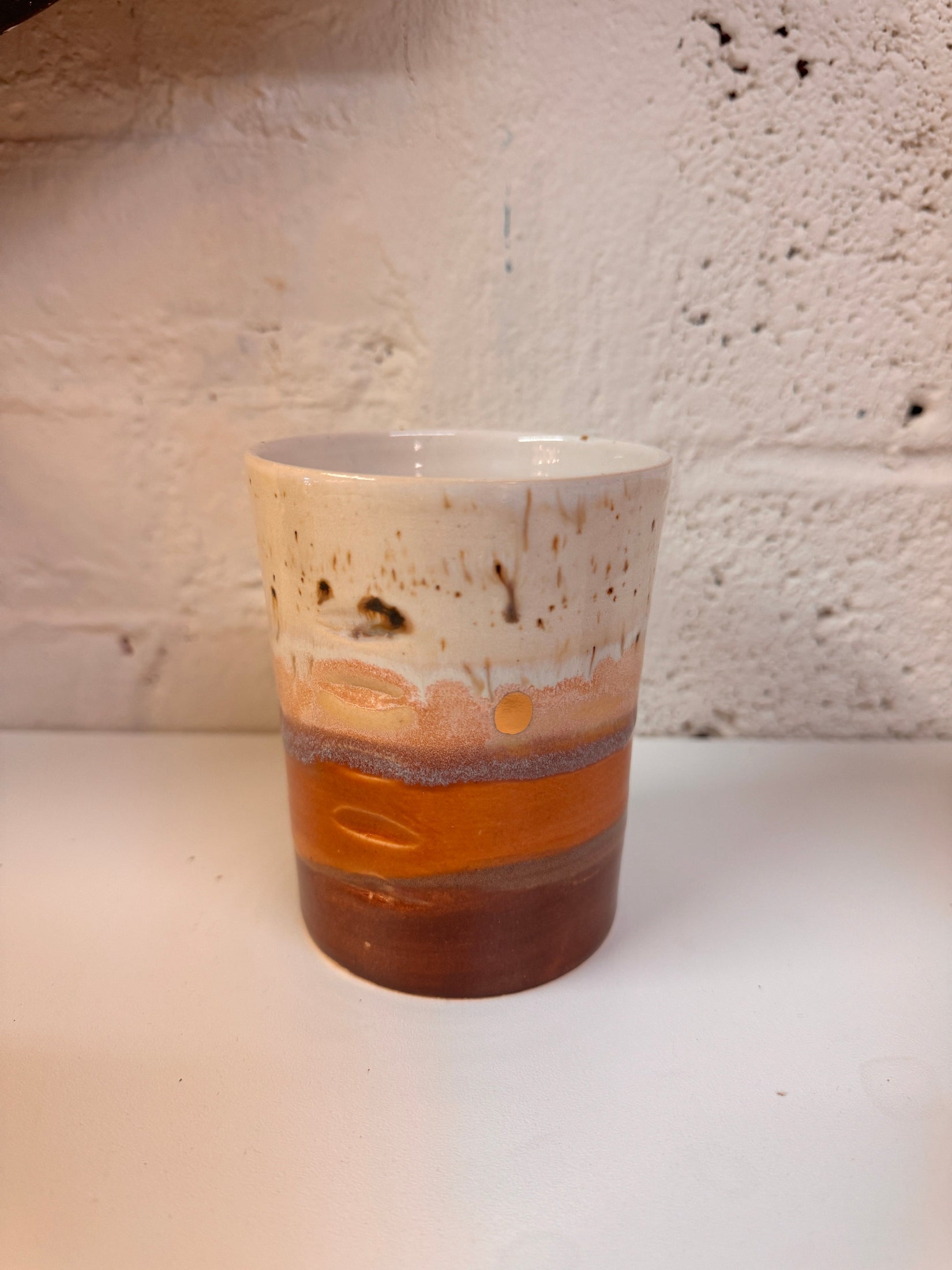 Sip in style with our handmade "pinch" tumbler! Crafted locally in Cleveland, these 14oz stoneware tumblers are designed with comfort in mind.