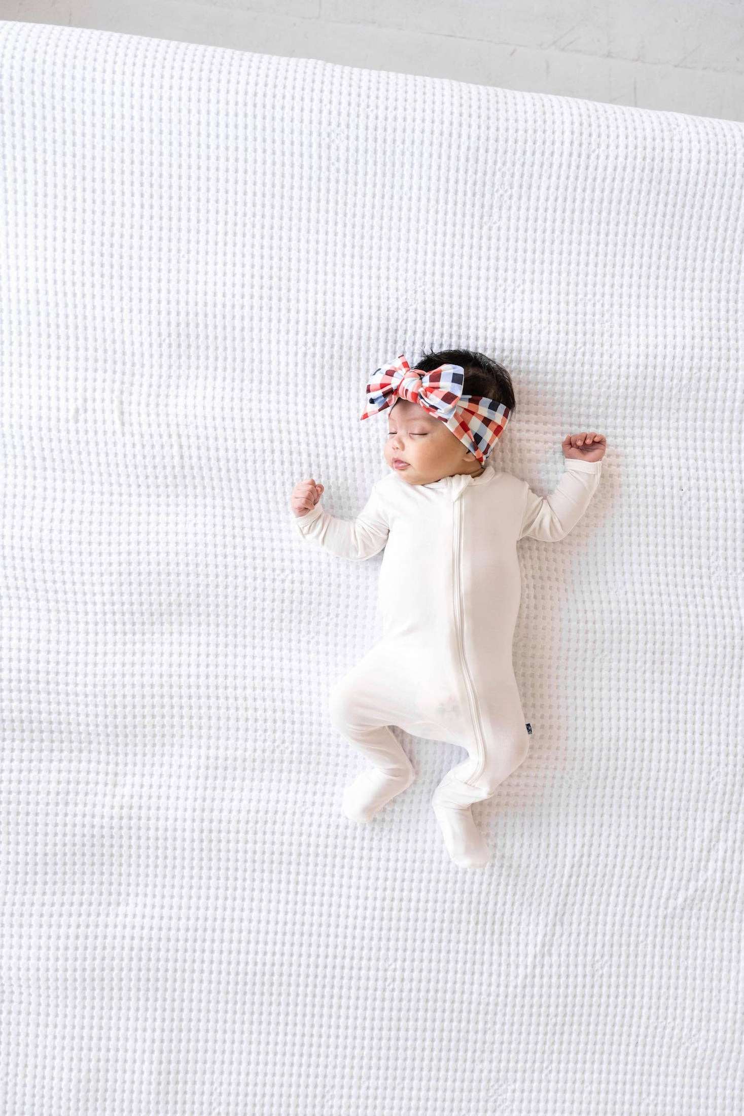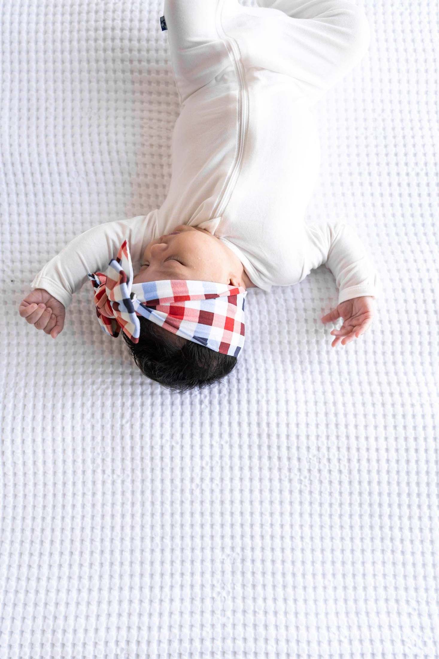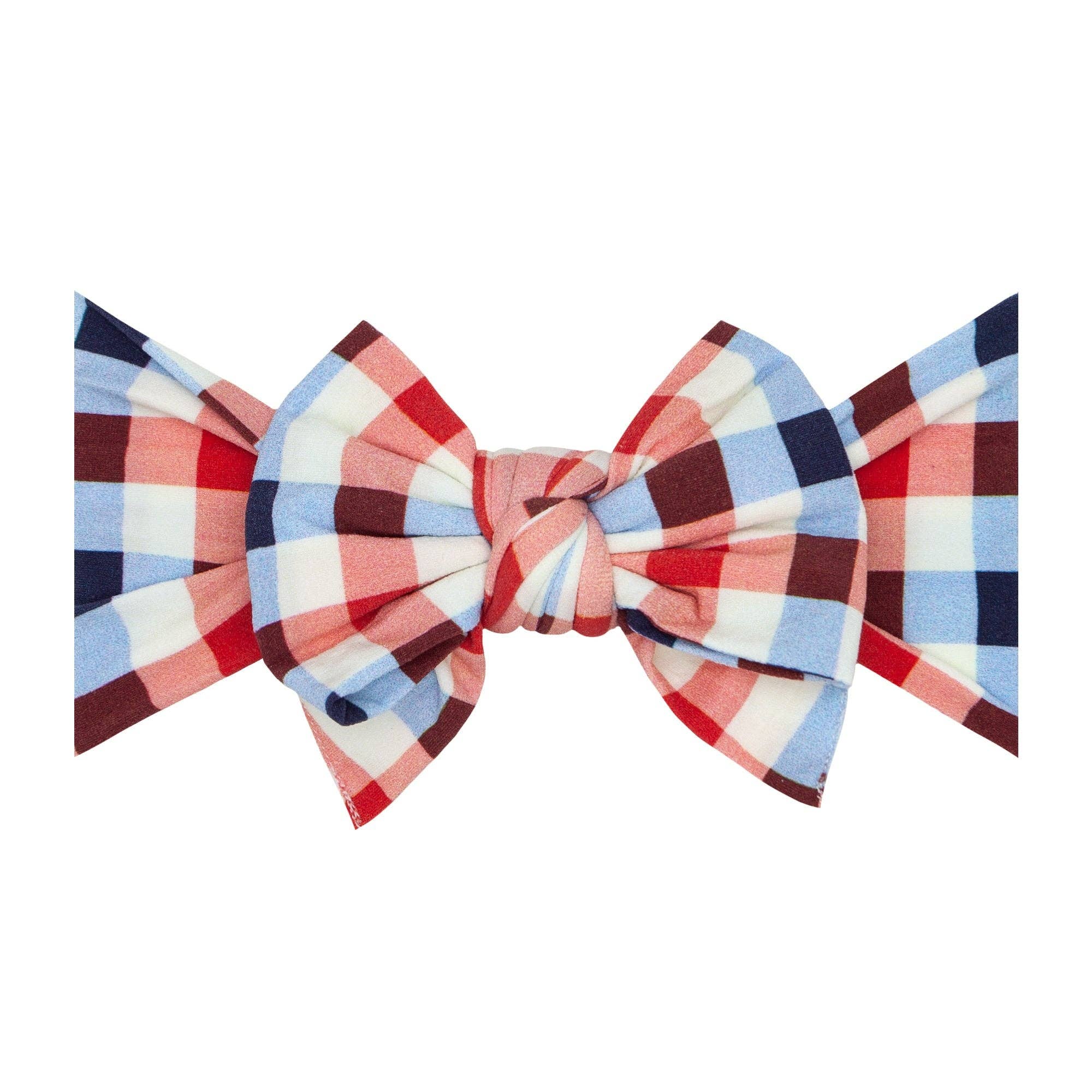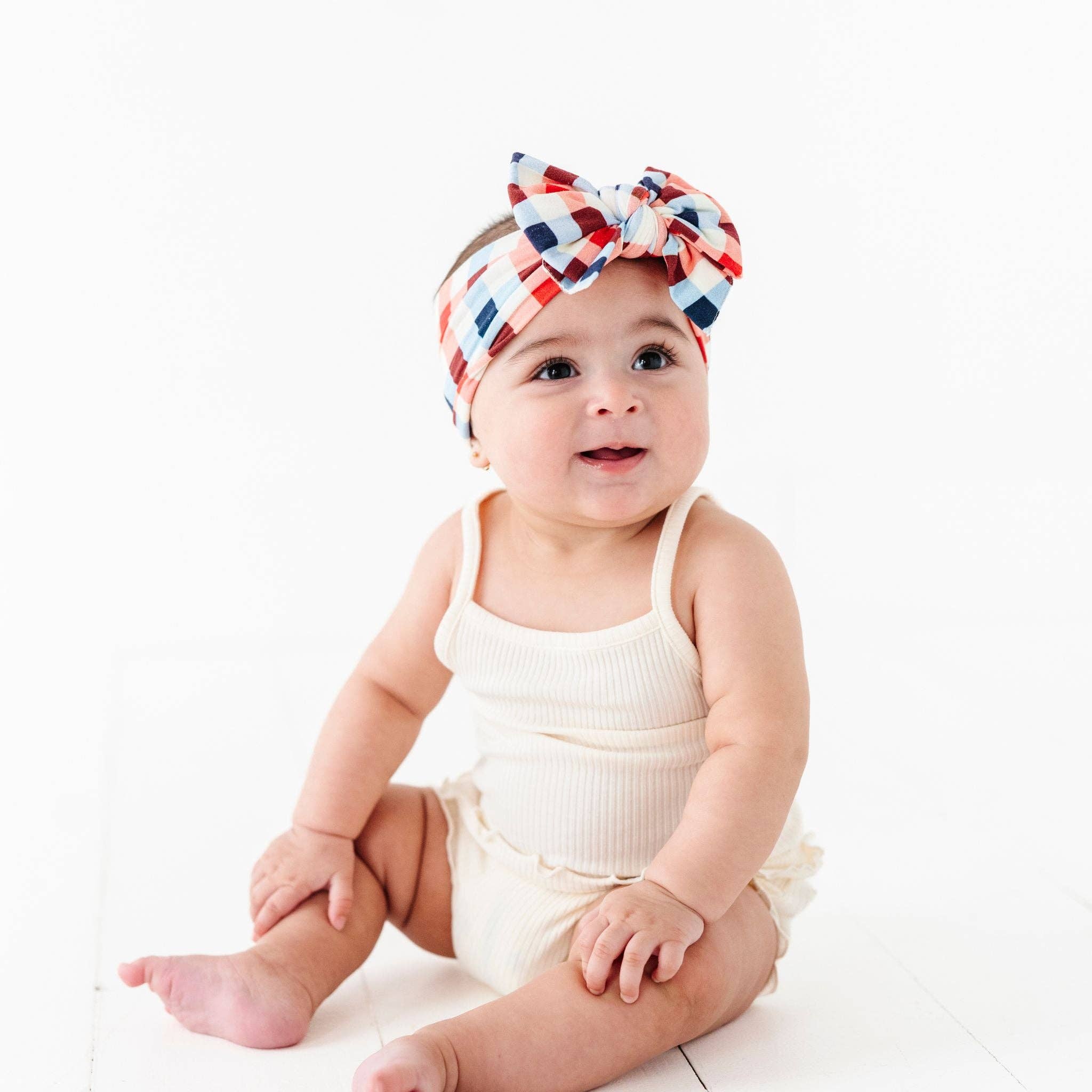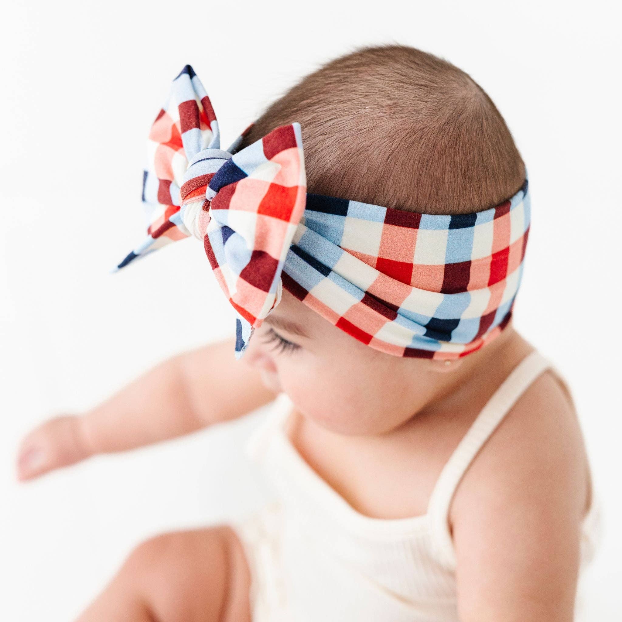 The PRINTED DEB (a.k.a Dang Enormous Bow) gets an extra boost of style with the seasons hottest prints! You'll be the main character of story time when you show up in this adorable headband. Enjoy ultimate comfort with our headband featuring minimal seams for maximum stretch. The classic bow shape with angled tails offers a sharp, tailored vibe. Detailed visible stitching not only adds charm but keeps the fabric intact—no holes cut here! Bright, bold prints bring a fun pop to any outfit, and floral patterns make mixing prints a breeze. These limited-edition designs won’t last long, so snag yours while they’re fresh! Each bow is perfectly secured with adhesive and lovingly hand sewn and tied by women in our local community.