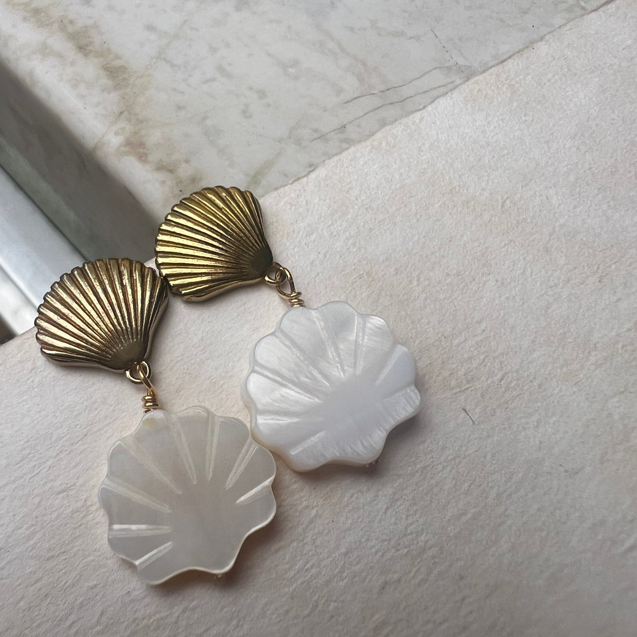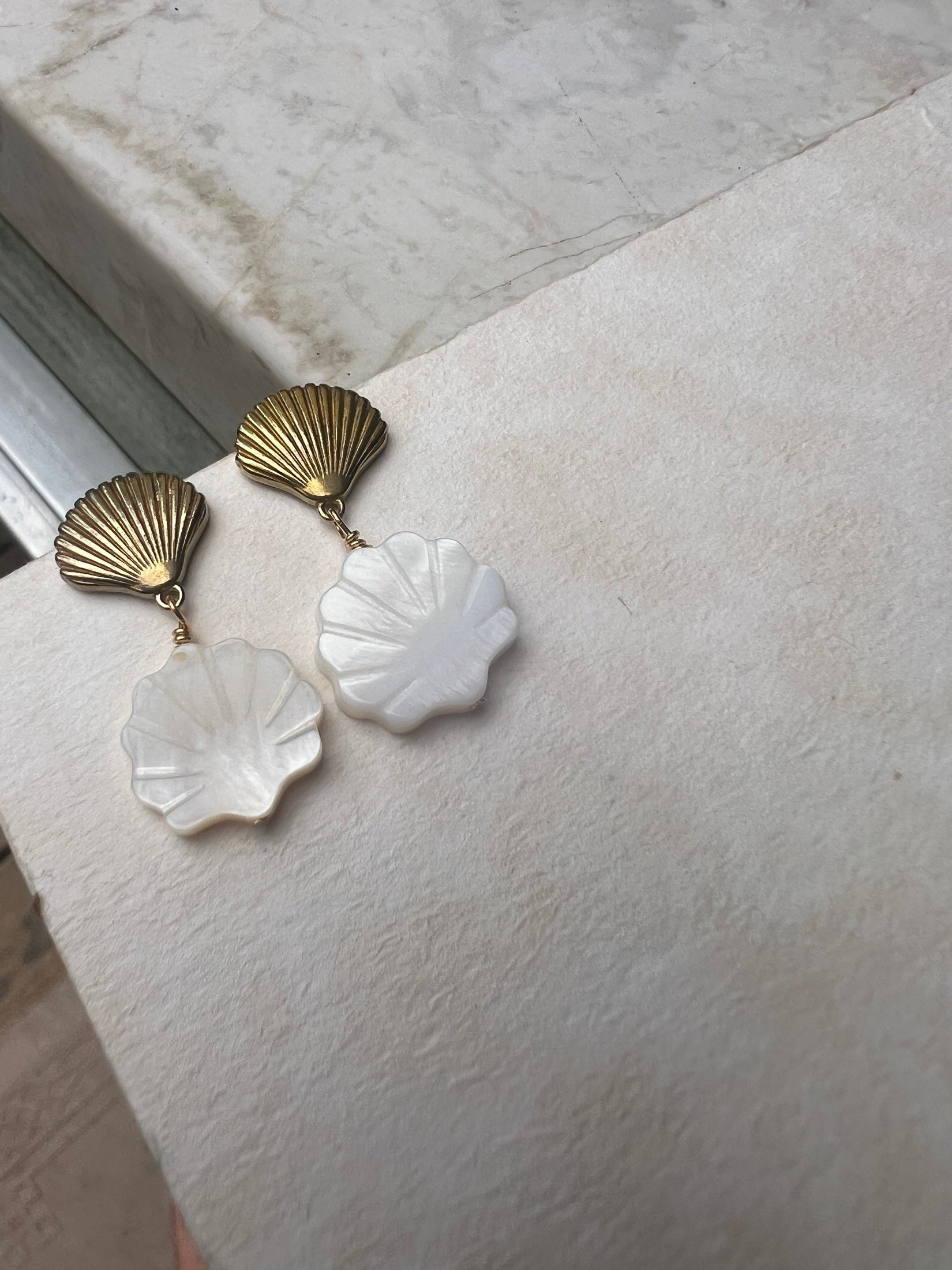 Brass Coquillage shell studs with a dainty mother of pearl.