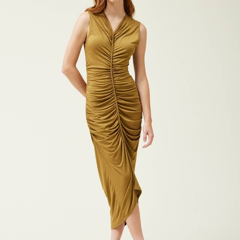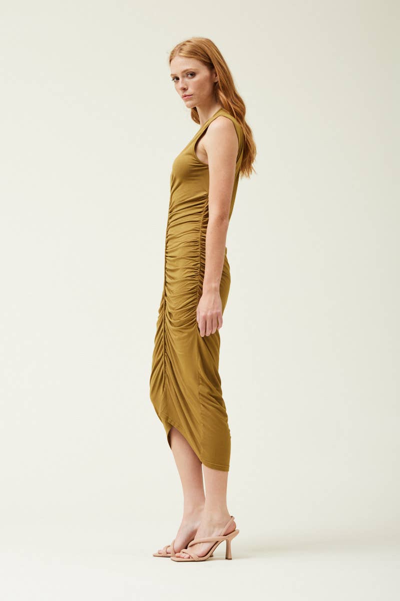 This trendy MIDI dress is made from 95% Modal and 5% Spandex, imported for maximum comfort and style. You can choose from the unique color option of brown olive.